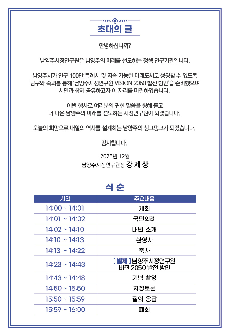 장소: 남양주시청 다산홀(경기도 남양주시 경춘로 1037)